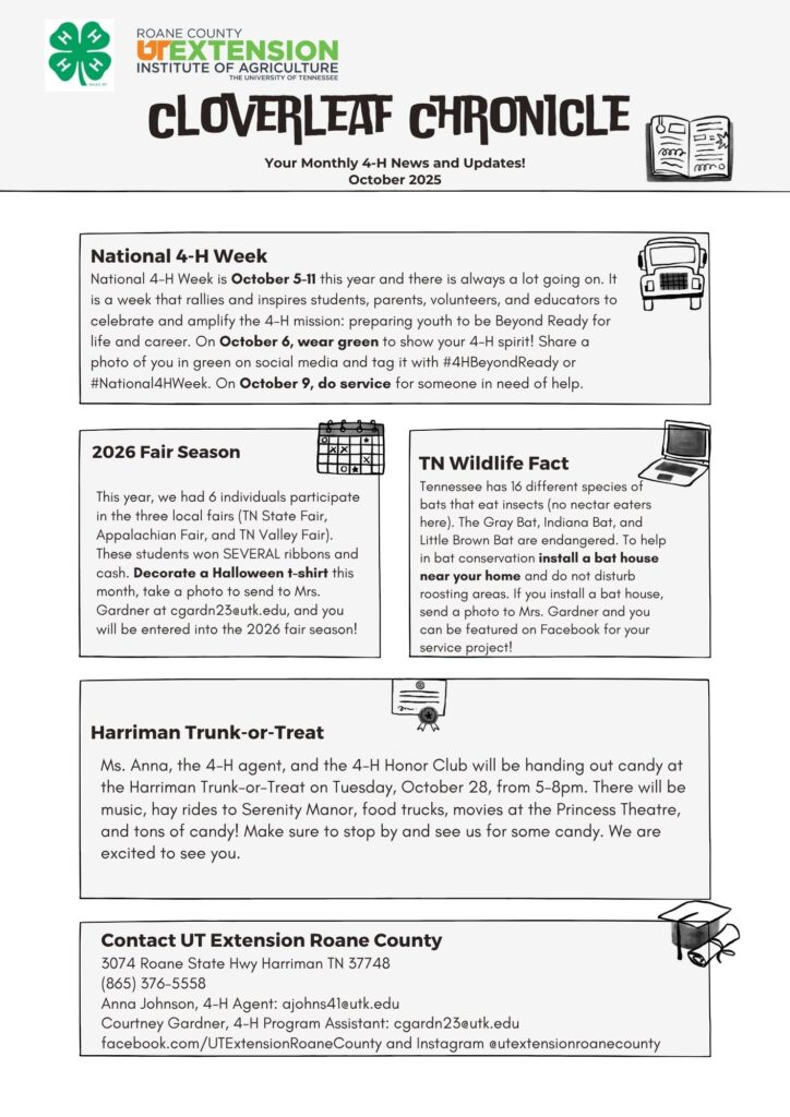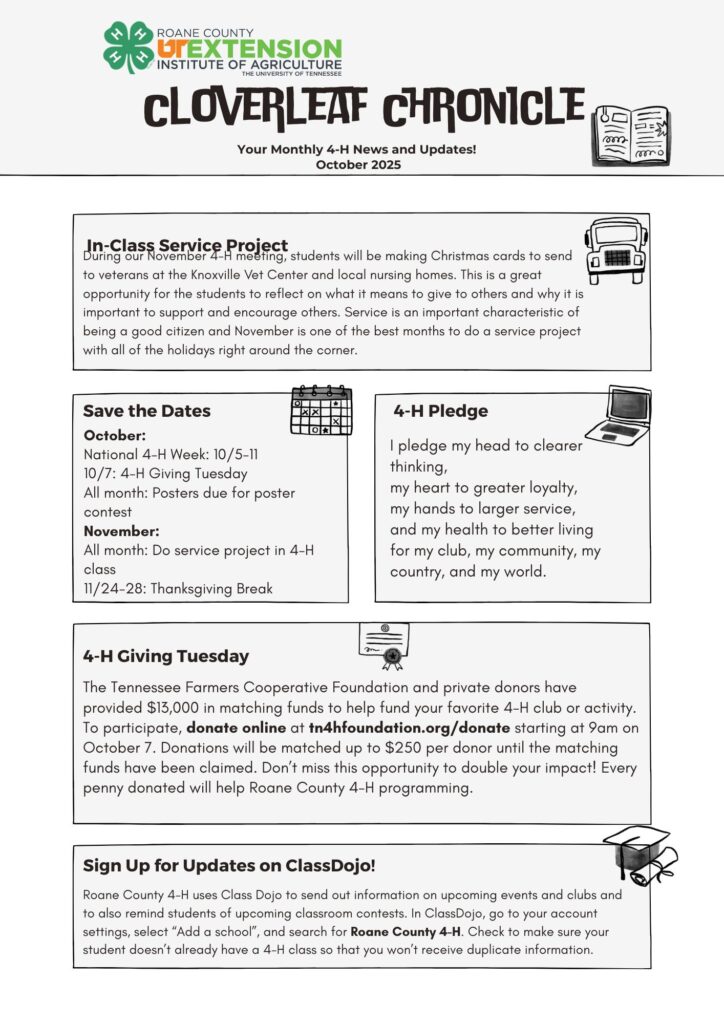Tennessee is lucky to be one of the few states that welcome 4-H clubs within the school day. This partnership works because 4-H Extension Agents across the state work hard to develop meaningful, exciting, standard-aligned lessons for in-school clubs. Roane County 4-H Clubs are offered during the school day to students at no cost.